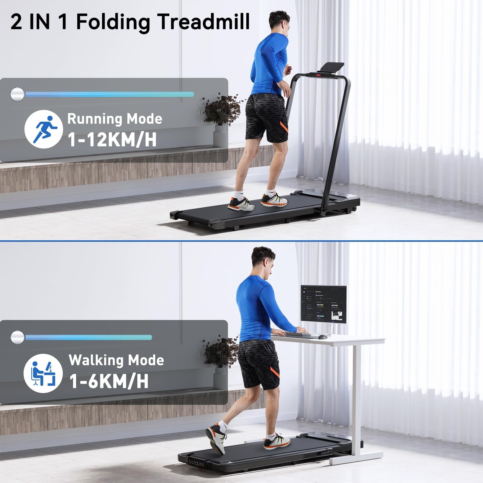 • 🔹 Core Benefit: Combines walking, jogging, and running modes to help boost daily movement, improve cardio health, and burn calories without leaving your workspace.